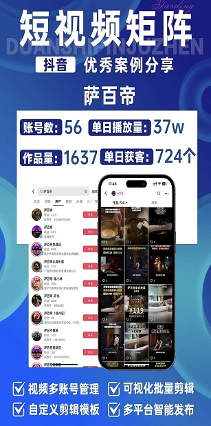矩阵管理、智能剪辑、批量发布、引流私域。